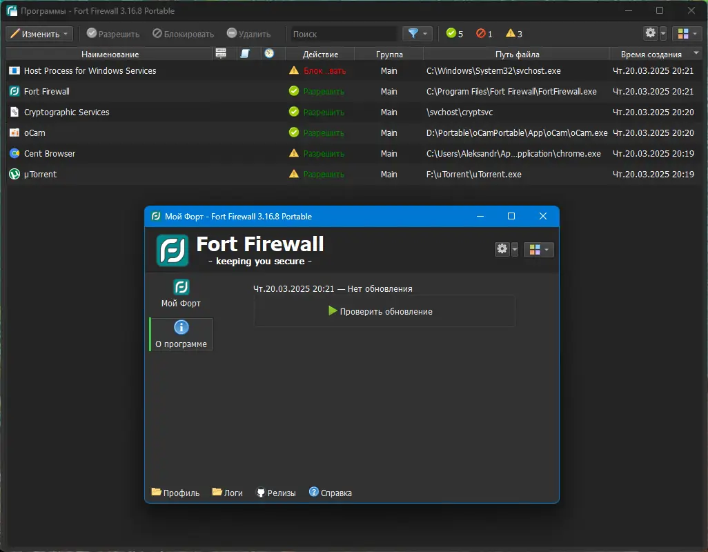 Fort Firewall сочетает в себе эффективность, простоту интерфейса и расширенные возможности фильтрации, что делает его достойным выбором среди решений для сетевой безопасности.