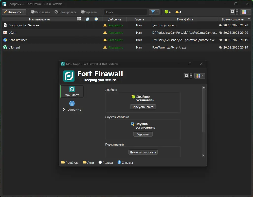Работа с Fort Firewall