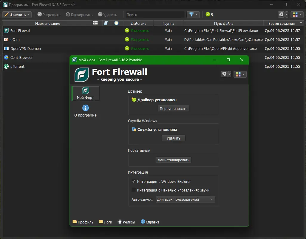 Fort Firewall предлагает пользователям эффективное решение для контроля сетевой активности на уровне приложений и IP-адресов. Программа позволяет точно определять, какие процессы могут выходить в интернет, а какие должны быть ограничены. Благодаря интеграции с Windows Filtering Platform, она работает стабильно и безопасно, не требуя сторонних драйверов или глубокого вмешательства в систему.