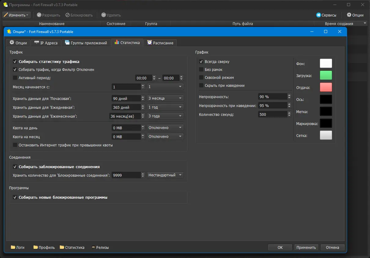 - Программа включает детальную статистику и график трафика, что упрощает анализ сетевой активности.