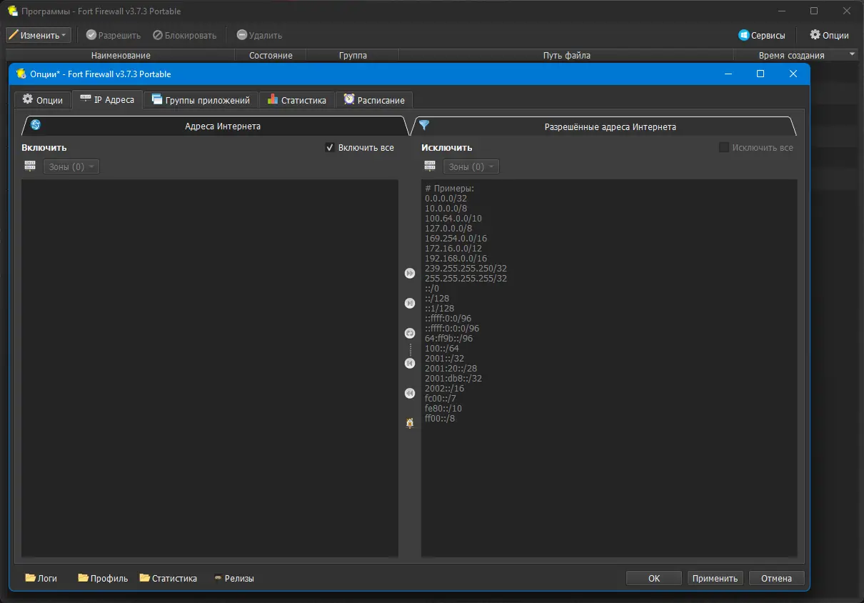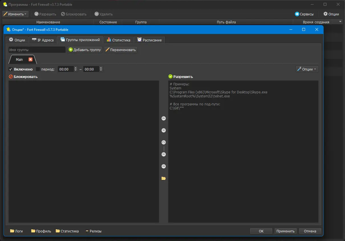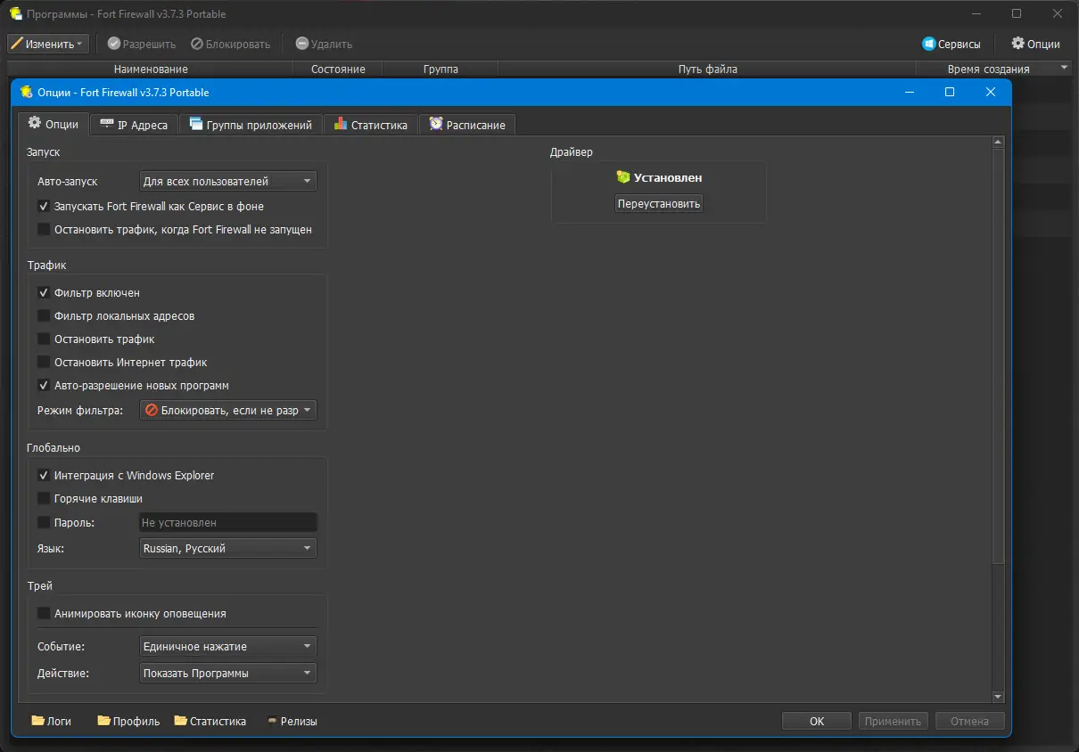 Работа с Fort Firewall