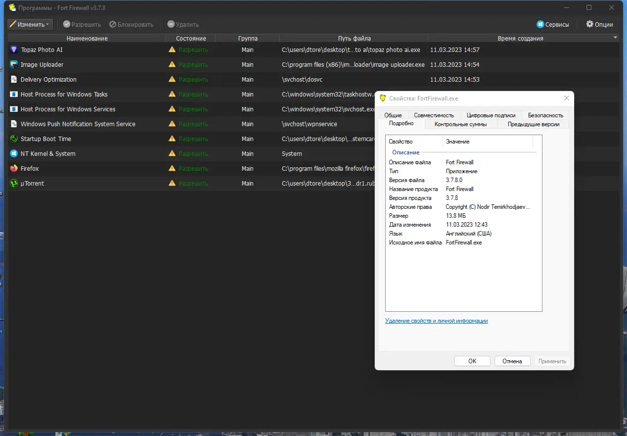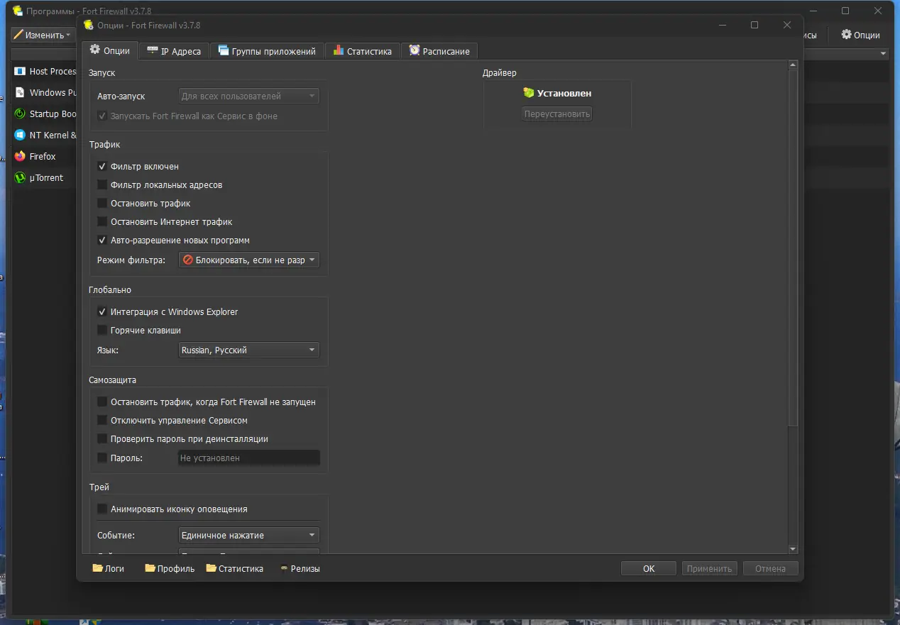Fort Firewall сочетает простоту интерфейса с мощным функционалом, что делает его подходящим как для новичков, так и для опытных пользователей.