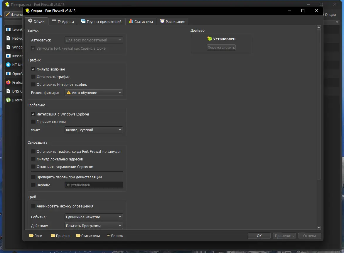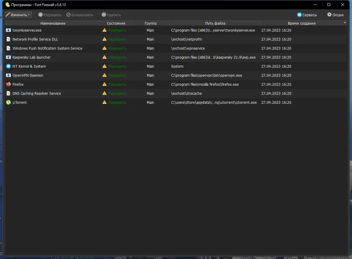 После установки Fort Firewall отображает список всех приложений, запрашивающих доступ в сеть. Пользователь может вручную разрешить или заблокировать соединение, а также задать временные рамки действия правила. Для удобства приложения сгруппированы, а также поддерживается фильтрация по названиям служб Windows. Регулярная правил помогает поддерживать высокий уровень защиты и оптимизировать сетевую активность. Дополнительно можно активировать защиту паролем, чтобы посторонние не могли изменить настройки брандмауэра. Интерфейс остаётся понятным даже при работе с расширенными функциями, такими как создание правил по протоколам или портам.