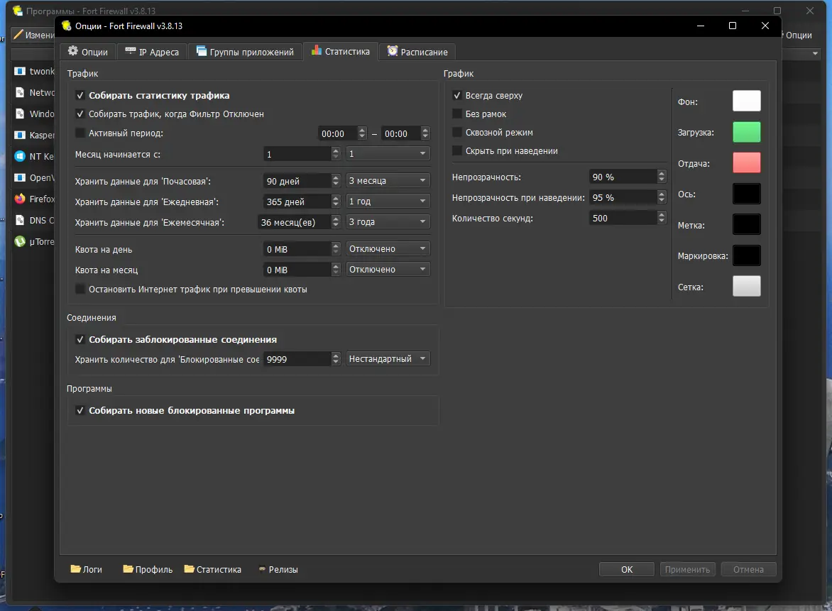 - Наличие детальной статистики и графиков сетевой активности в реальном времени.