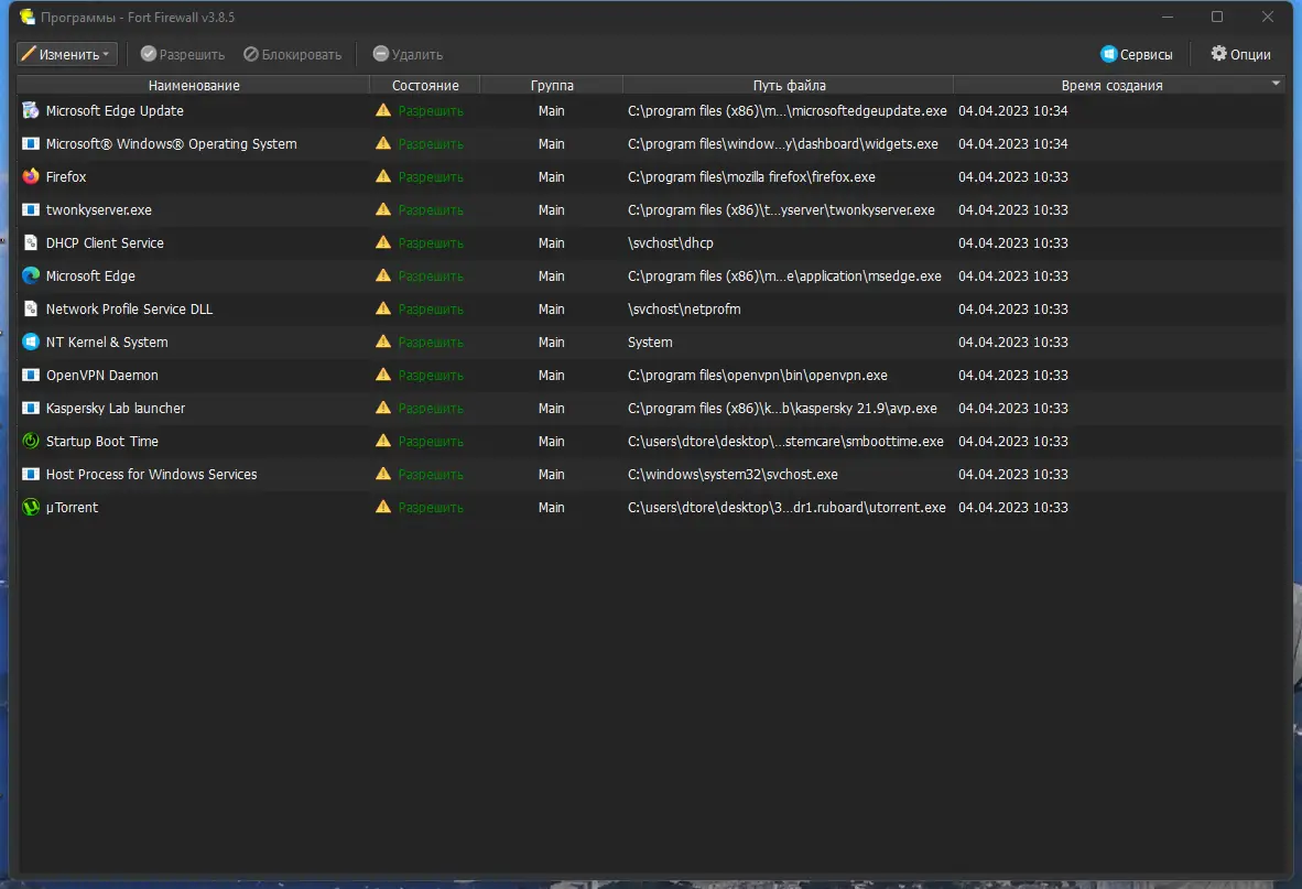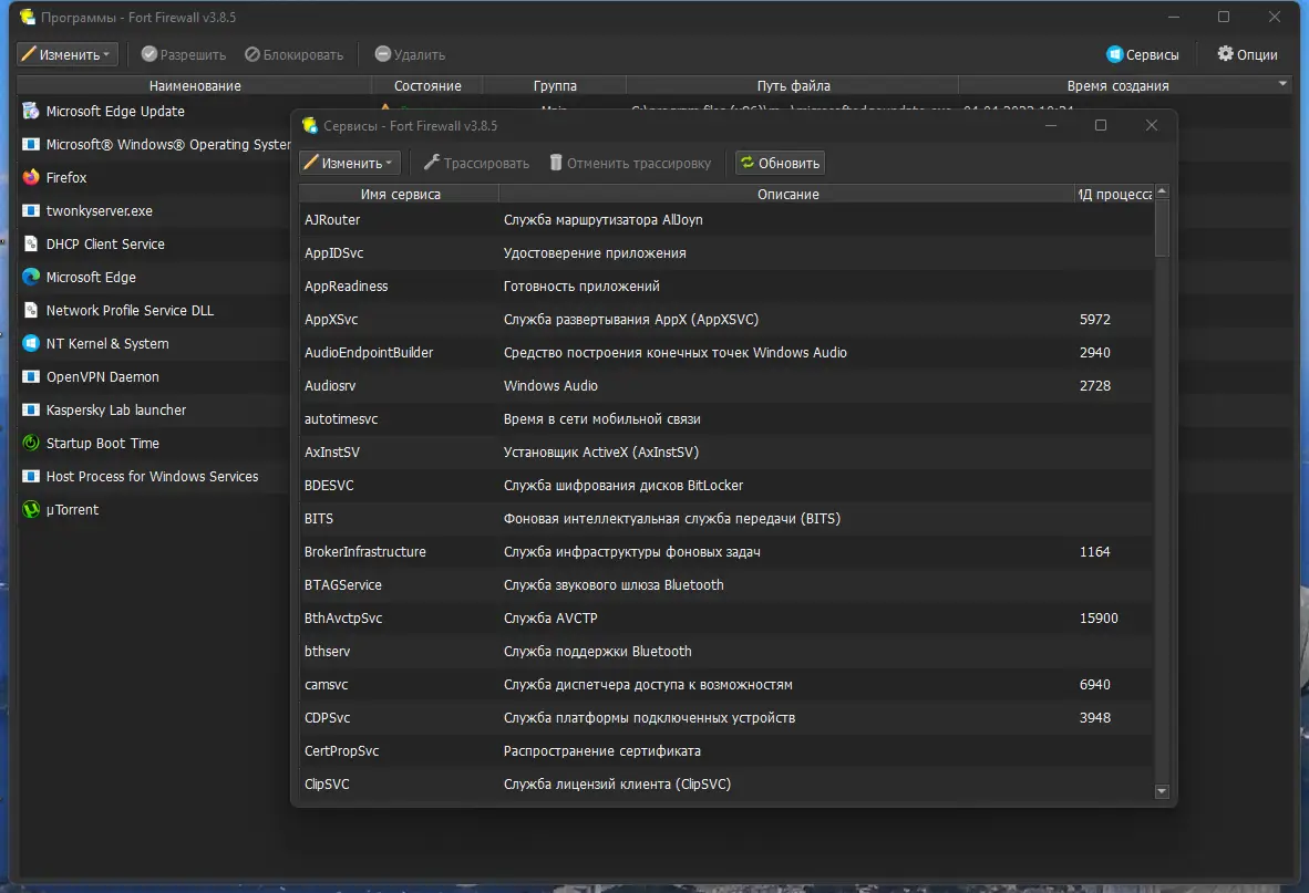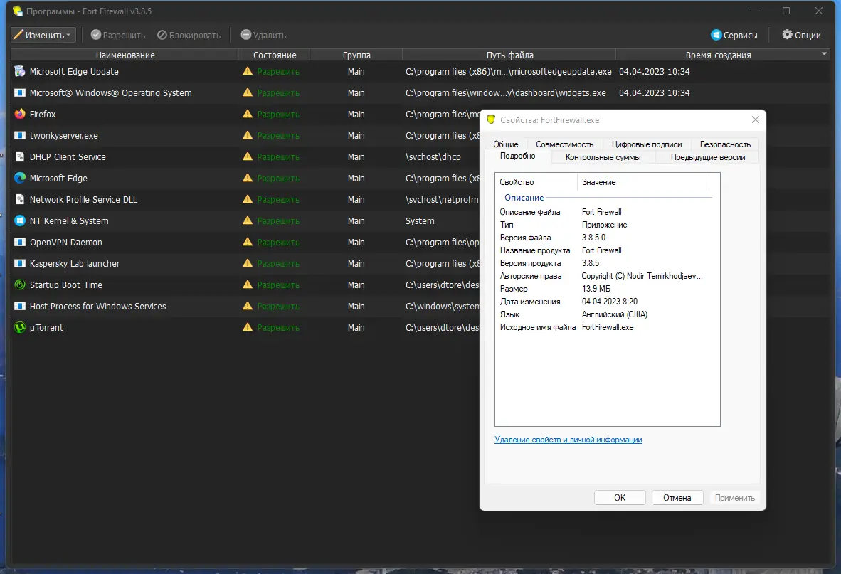 Fort Firewall — это бесплатный брандмауэр для Windows, обеспечивающий контроль над сетевым трафиком, блокировку приложений и фильтрацию соединений по IP-адресам. Программа основана на WFP и позволяет точно настраивать правила доступа в интернет для отдельных процессов.