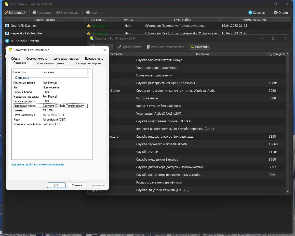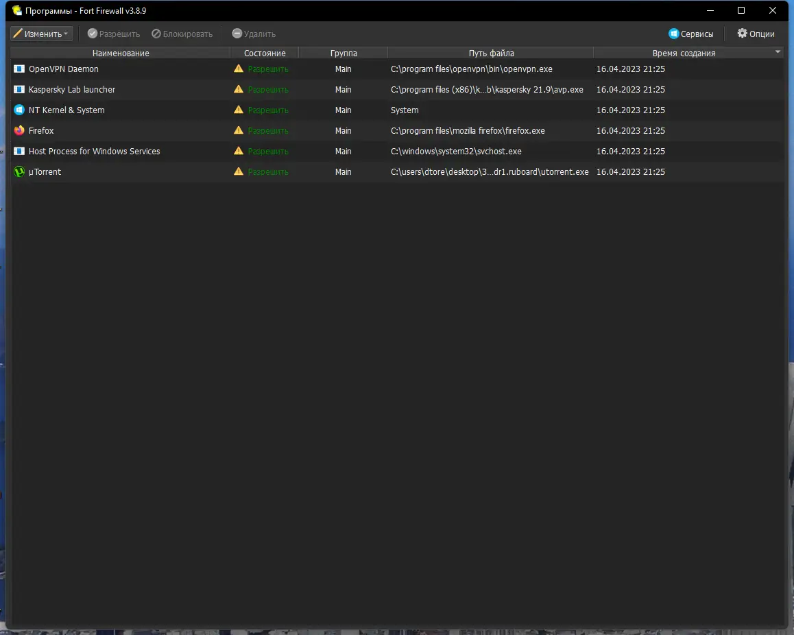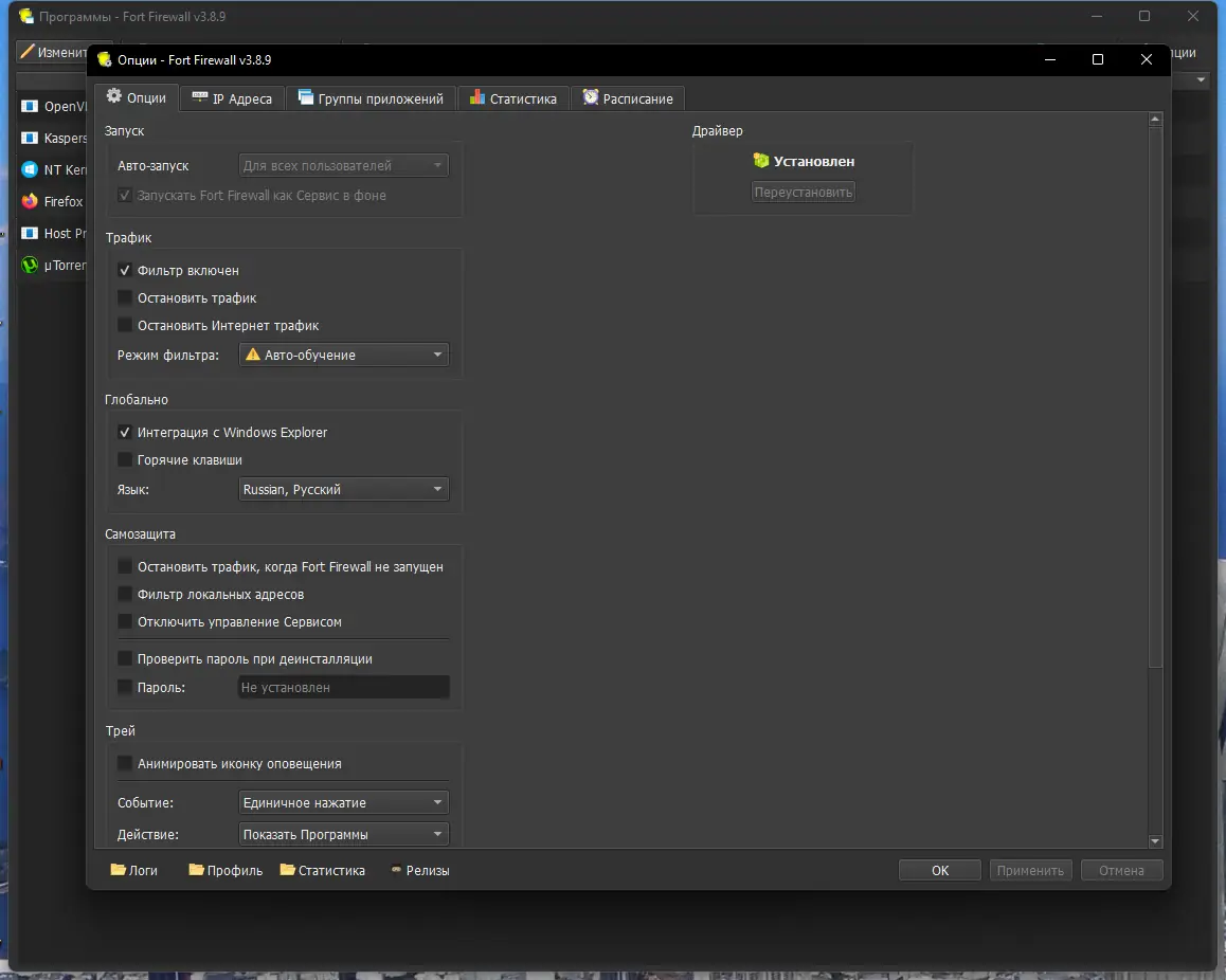 Работа с Fort Firewall