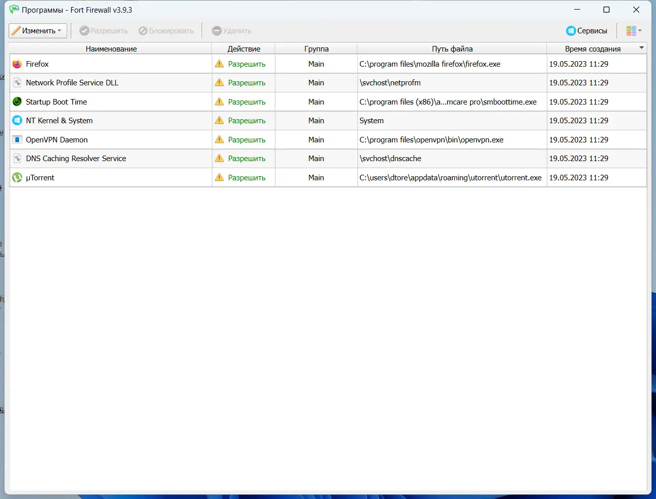 Работа с Fort Firewall