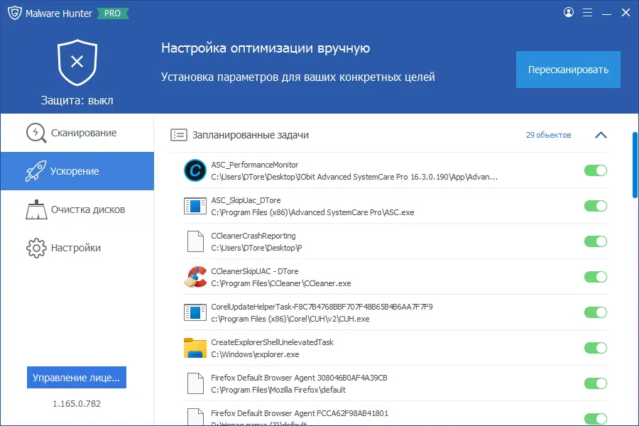 Работа с Glarysoft Malware Hunter