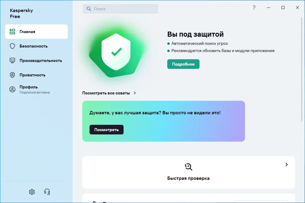 Kaspersky Free сочетает в себе мощные алгоритмы защиты и минимальное влияние на производительность. Продукт интегрируется с системой на глубоком уровне, обеспечивая защиту в реальном времени. При этом он остаётся полностью free и не требует подписки для базовых функций. Поддержка современных технологий, таких как AMSI и защита от шифровальщиков, делает его актуальным решением даже в условиях растущих киберугроз.