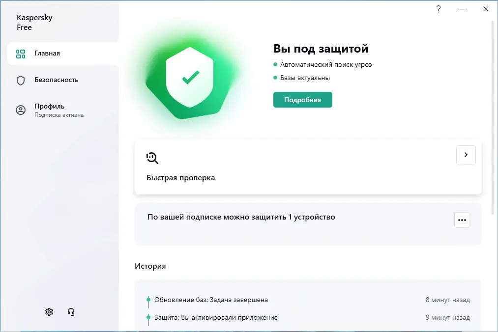 Kaspersky Free – это бесплатное решение для базовой защиты компьютера, основанное на облачных технологиях Kaspersky Security Network. Программа обеспечивает защиту от вирусов, вредоносных скриптов, сетевых угроз и атак через электронную почту и мессенджеры. Легковесная система работает в фоне, не перегружая ресурсы системы, и подходит для пользователей, ищущих надежный способ сделать работу за компьютером безопасной без финансовых вложений.