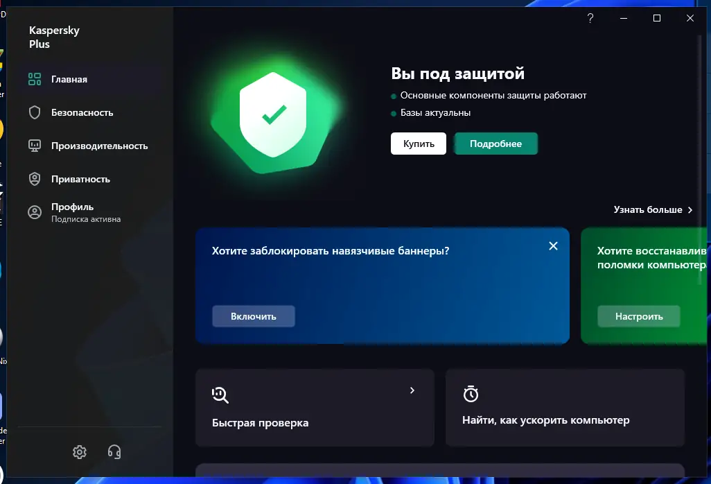 Работа с Kaspersky Plus
