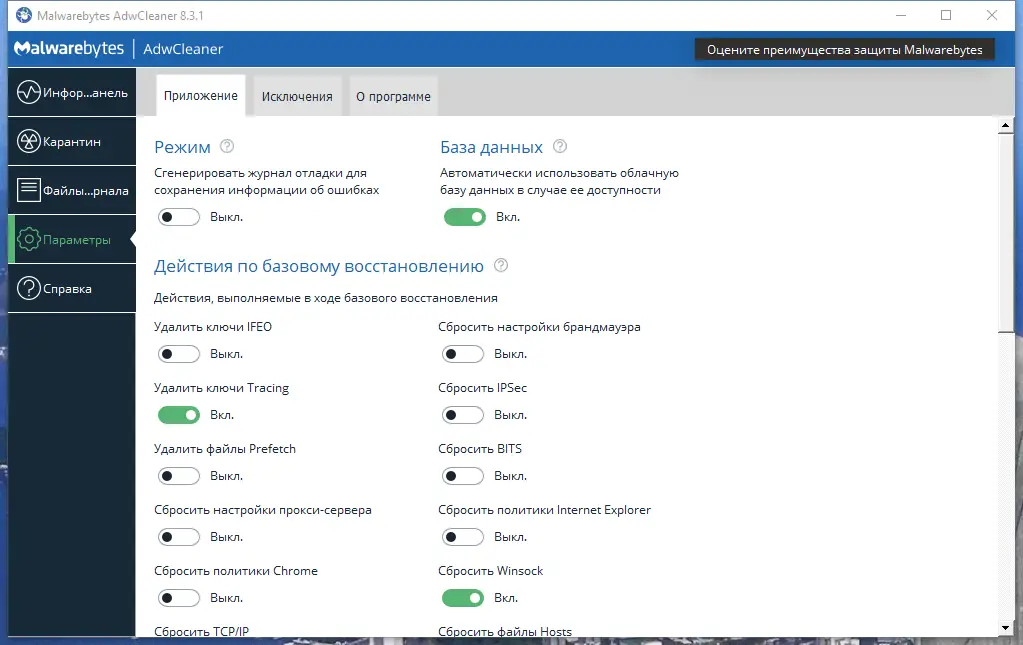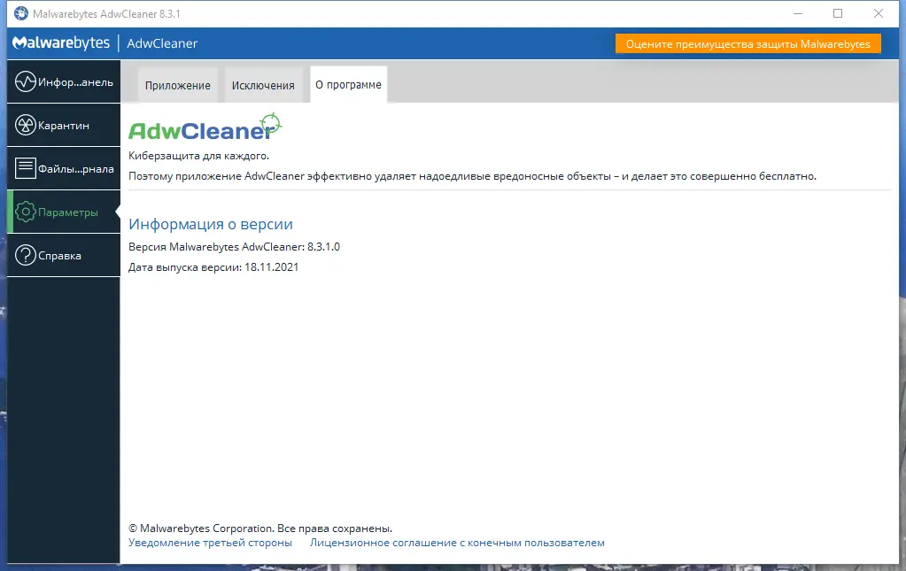 Описание Malwarebytes AdwCleaner
