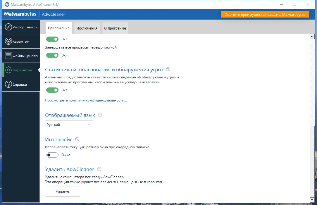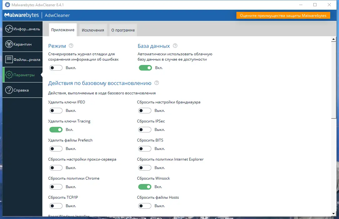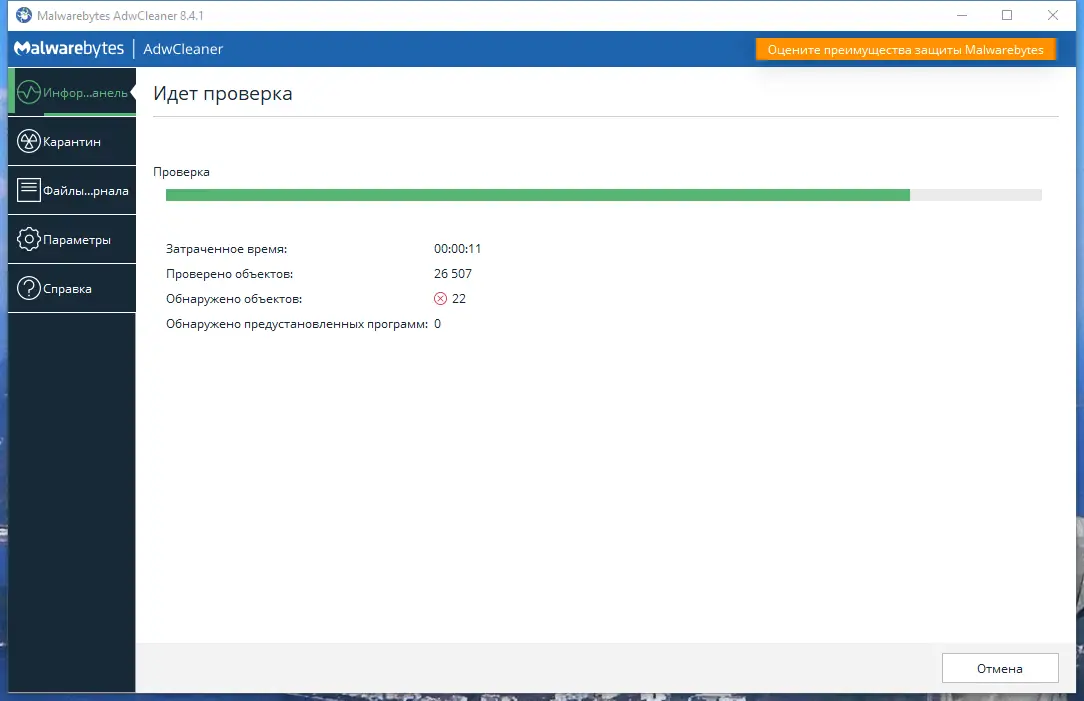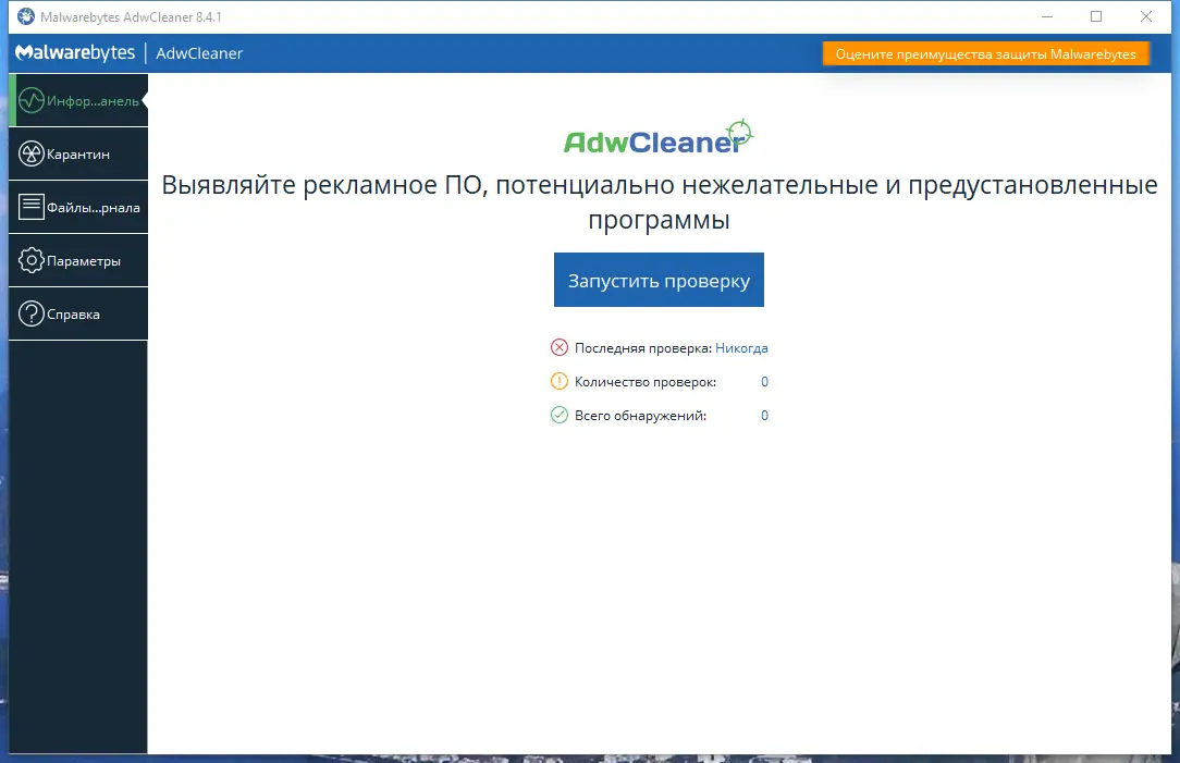 Работа с Malwarebytes AdwCleaner