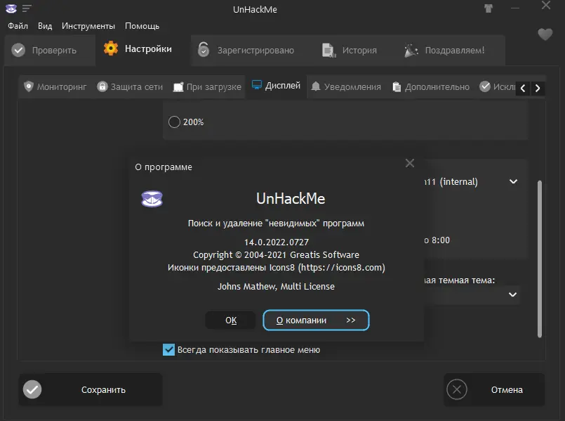 UnHackMe — это не классический антивирус, а мощная утилита, ориентированная на выявление и устранение скрытых угроз. Она специализируется на борьбе с руткитами, потенциально нежелательными приложениями и вредоносными изменениями в системе. Программа анализирует автозагрузку, службы, настройки браузеров и реестр, выявляя подозрительные или неизвестные элементы, которые могут нарушать безопасность и стабильность работы компьютера.