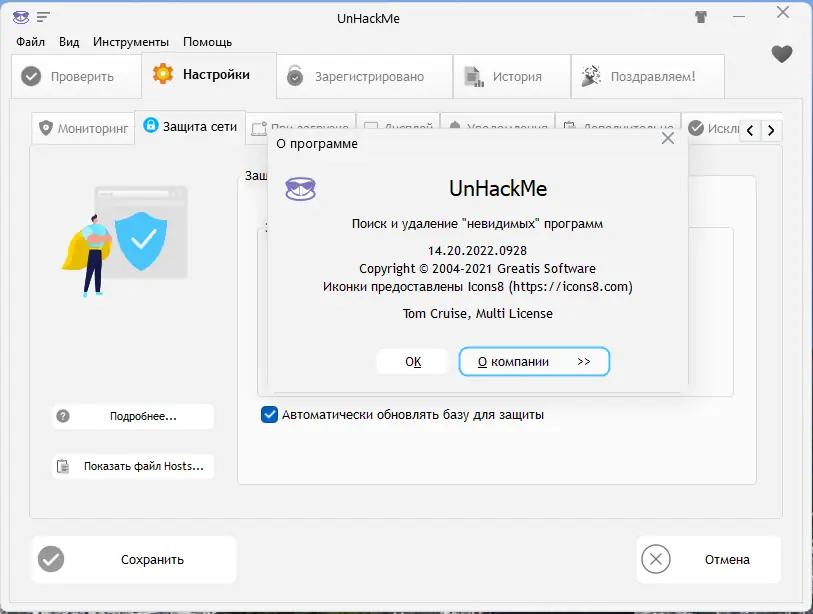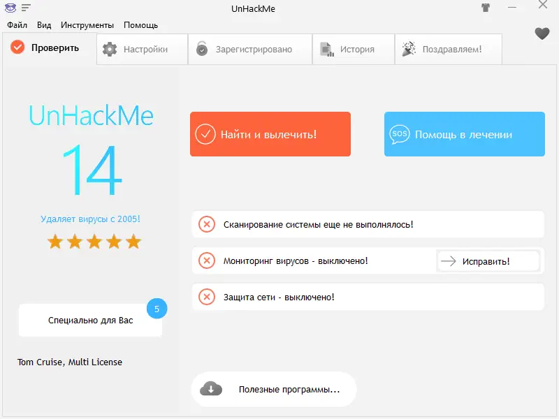 UnHackMe эффективно справляется с угрозами, которые остаются незамеченными после работы основного антивируса.