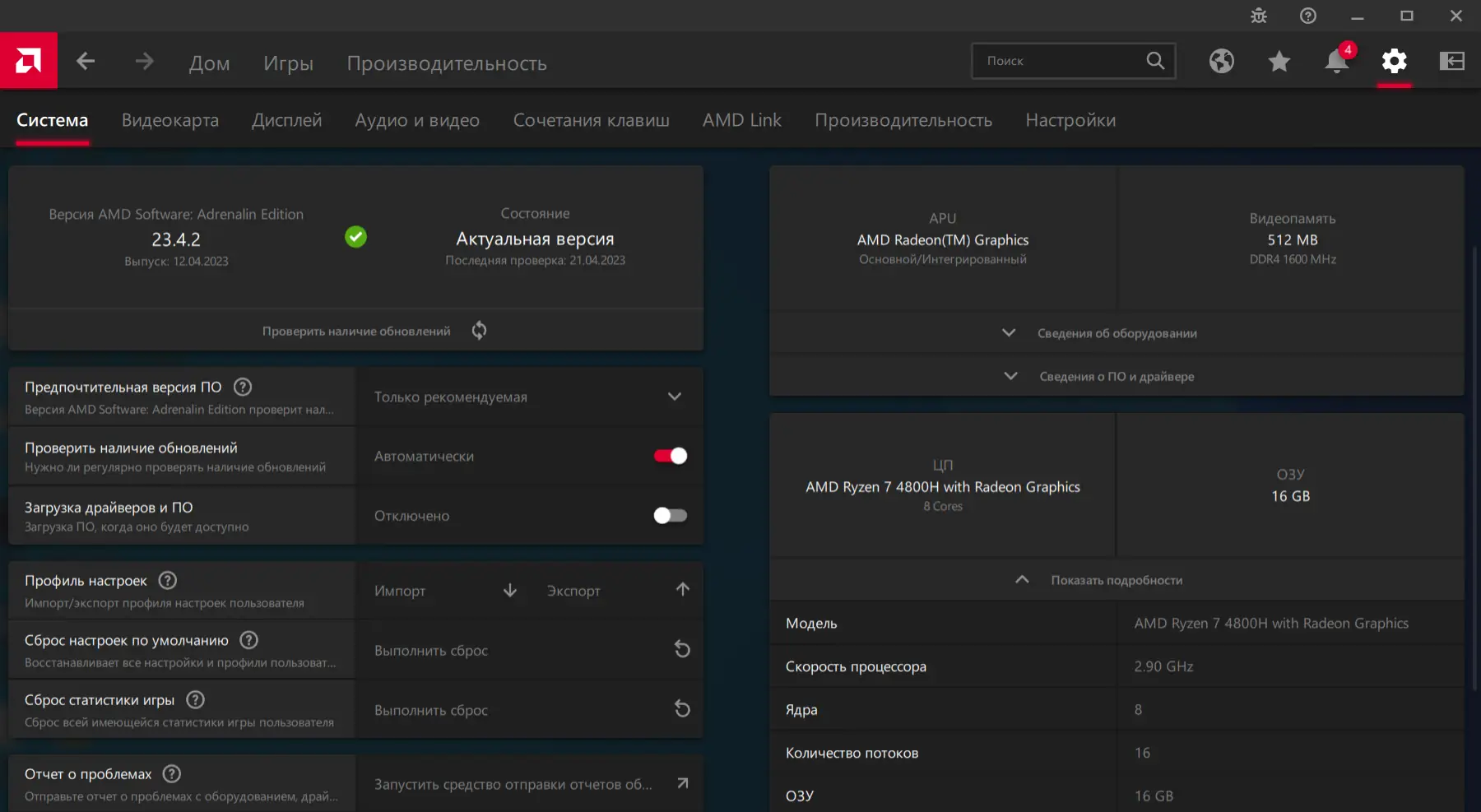 Работа с AMD Radeon Software