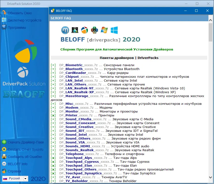 BELOFF — универсальный сборник драйверов и утилит для автоматической установки на компьютеры и ноутбуки под управлением Windows. Включает в себя актуальные версии драйверов, инструменты диагностики оборудования и программы для восстановления системы. Решение подходит как для свежей установки ОС, так и для обновления компонентов на действующей системе. Позволяет быстро настроить оборудование без подключения к интернету.
