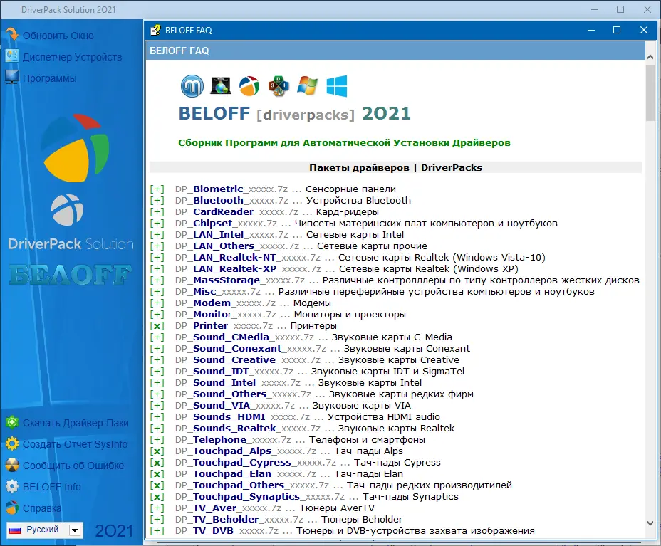 Сборник BELOFF — это универсальный инструмент для автоматической установки драйверов на компьютеры под управлением Windows. Он включает в себя актуальные версии утилит, позволяющих быстро восстановить работоспособность системы после чистой установки или обновления оборудования. Программа поддерживает широкий спектр устройств и предлагает как автоматический, так и ручной режим подбора драйверов.