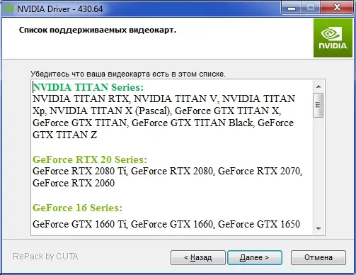 - Поддержка видеокарт от серии GeForce 600 до RTX 20 и MX-серий, включая настольные и мобильные решения.