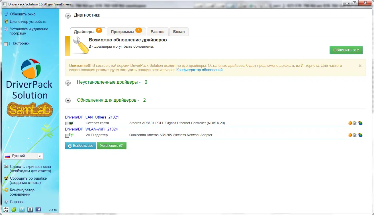 - Использование оболочек DriverPack Solution, Drivers Installer Assistant и Snappy Driver Installer для автоматического подбора