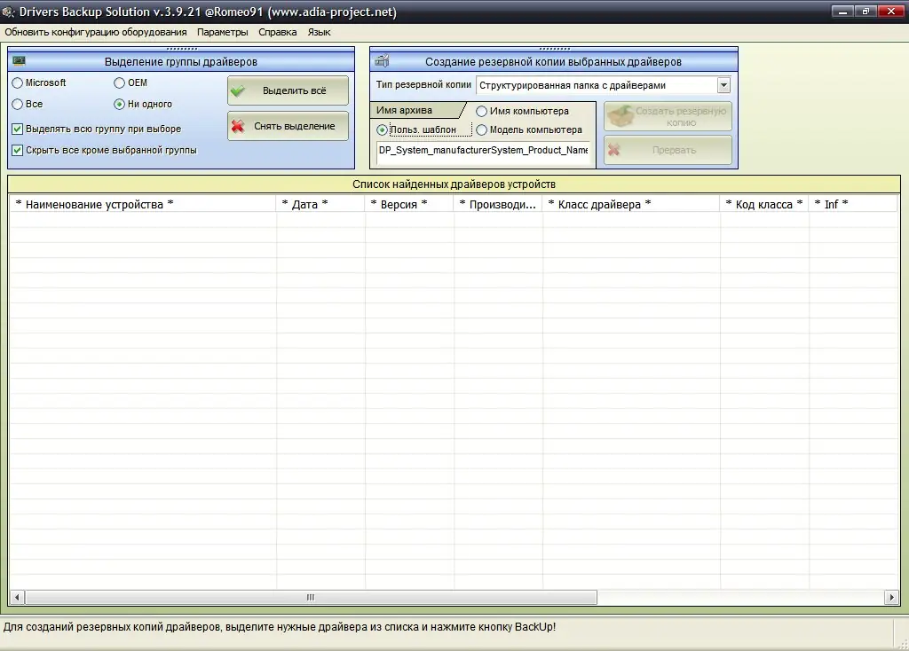 - Поддерживается резервное копирование уже установленных драйверов с помощью Drivers Backup Solution.
