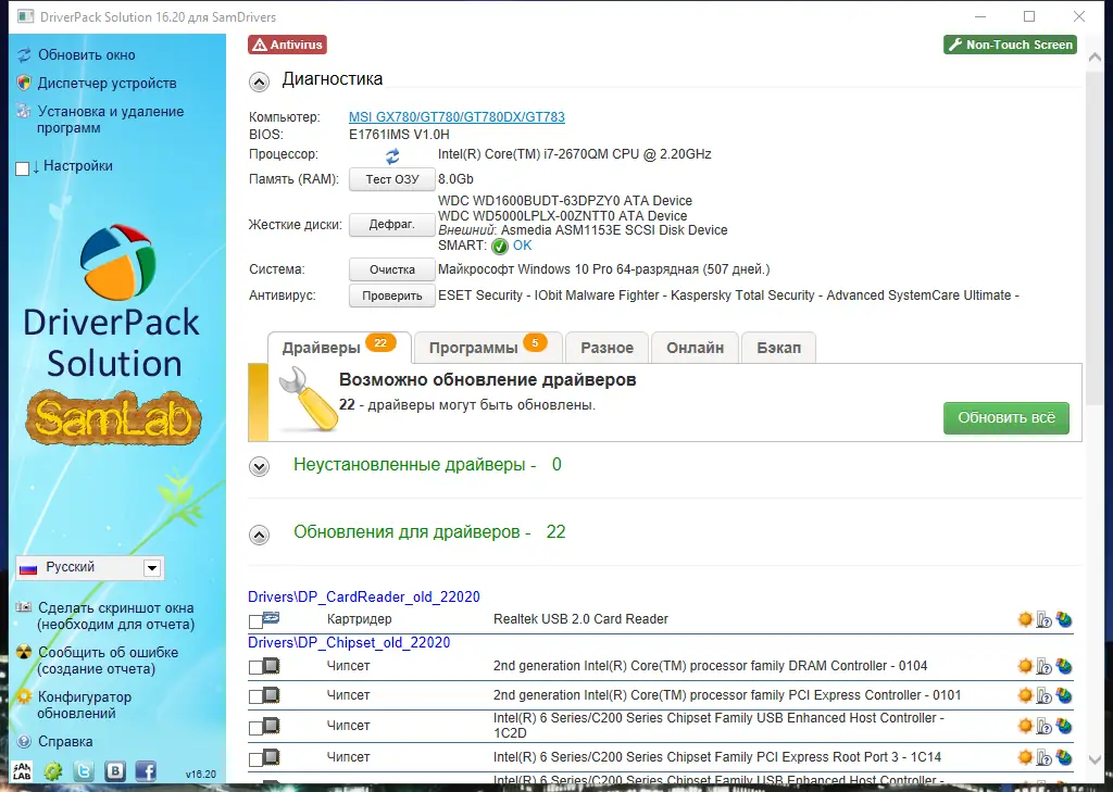 - Наличие инструментов для резервного копирования уже установленных драйверов