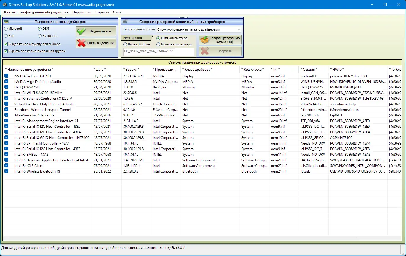 - Поставляется с инструментом резервного копирования драйверов — Drivers Backup Solution