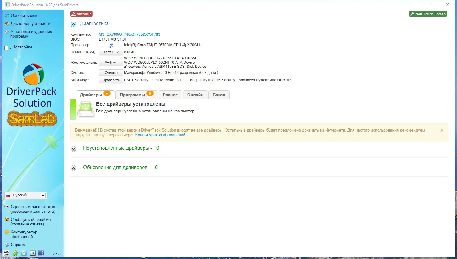 - Версия Expert содержит узкоспециализированные драйверы, подходящие не для всех систем.