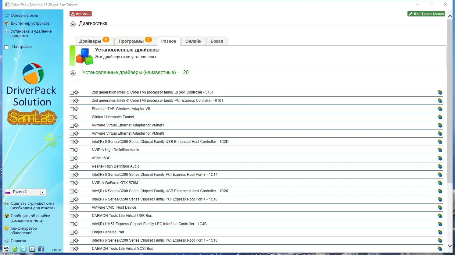 - В состав входят утилиты для создания резервных копий установленных драйверов.