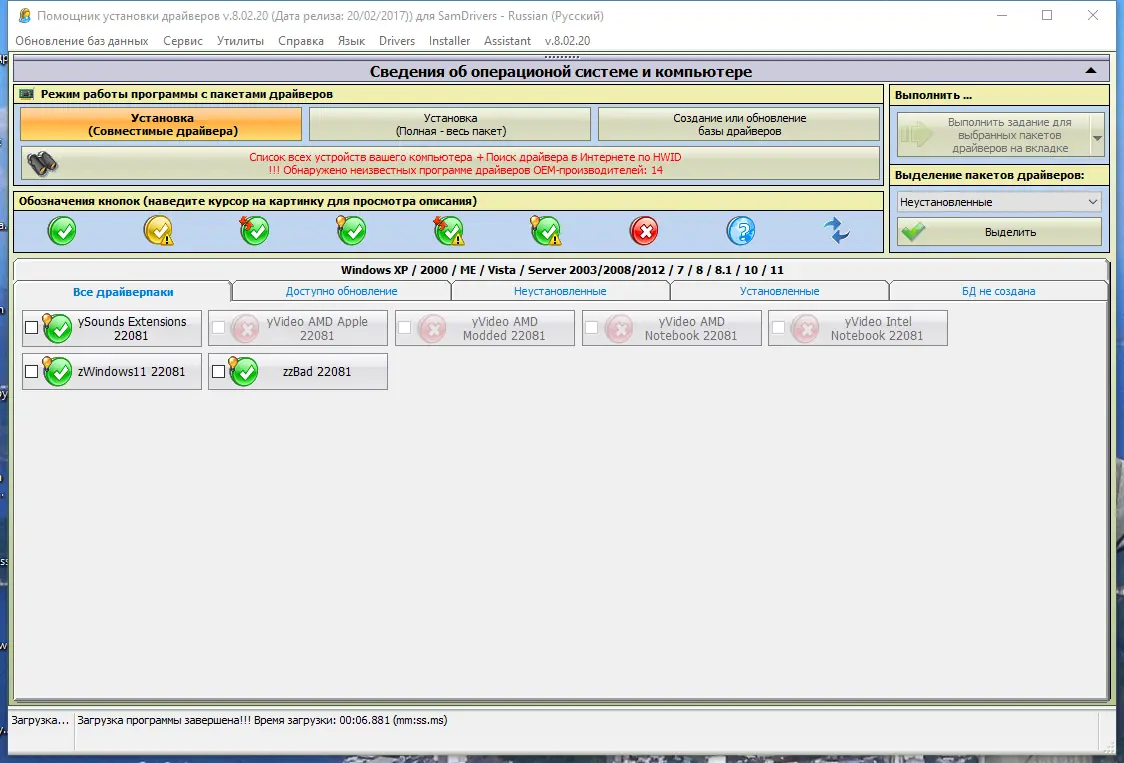 Пользоваться SamDrivers просто: после запуска одной из оболочек — DriverPack Solution, Drivers Installer Assistant или Snappy Driver Installer — начинается автоматическое сканирование системы. Программа определяет установленное оборудование, сравнивает его с базой драйверов и предлагает установить отсутствующие или устаревшие компоненты. Пользователь может выбрать режим полной автоматизации или вручную указать, какие драйверы необходимо интегрировать. Для опытных пользователей доступна возможность ручного запуска отдельных пакетов, таких как DP_yVideo_AMD-Modded_22081.7z или DP_zWindows11_22081.7z, что особенно полезно при работе с нестандартными конфигурациями. Также предусмотрена функция резервного копирования через Drivers Backup Solution, позволяющая восстановить работоспособность системы после сбоя.