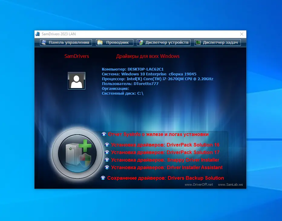 - Драйверы собраны персонально разработчиком SamLab с учётом последних обновлений