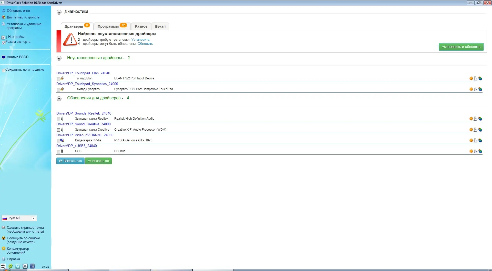 - Включение драйверов для ноутбуков и стационарных компьютеров всех популярных производителей
