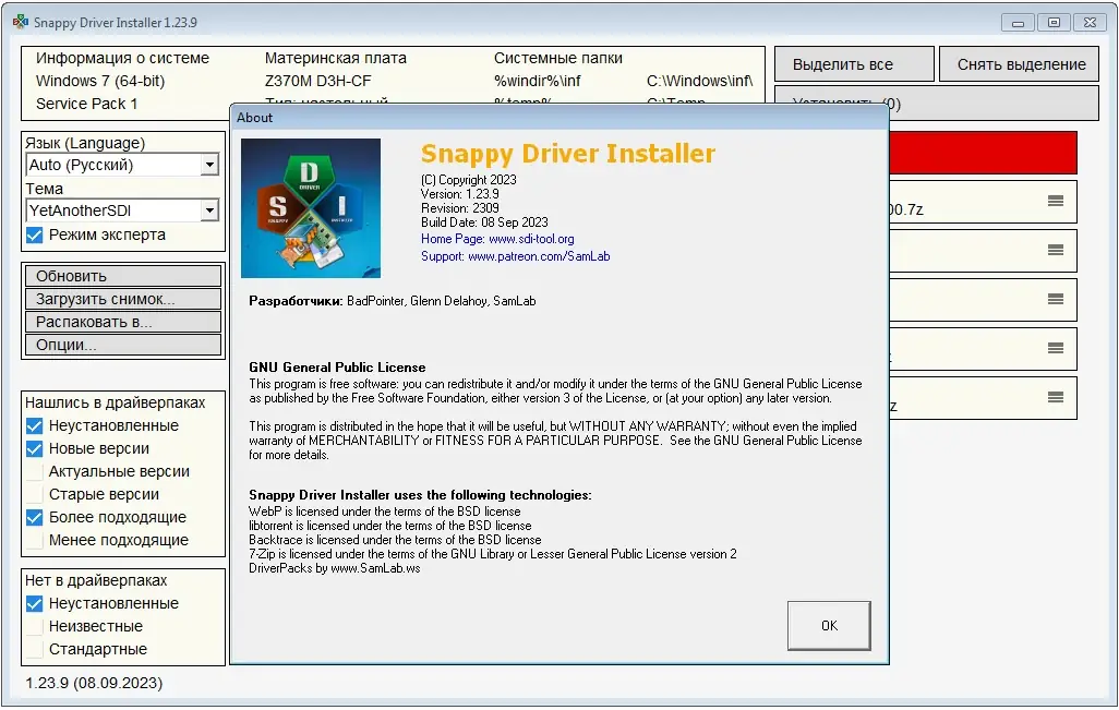 SamDrivers не является клоном других драйвер-паков — это оригинальная сборка с более свежими и проверенными версиями компонентов, разработанная с учётом реального опыта эксплуатации.