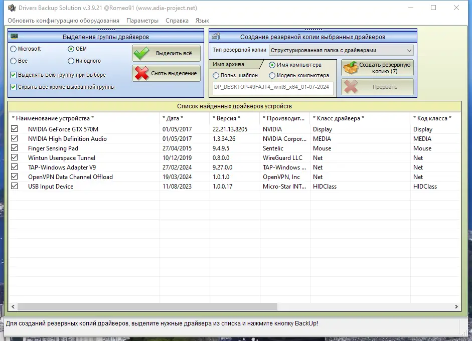 - Наличие резервной копии через Drivers Backup Solution минимизирует риски сбоев после обновления.