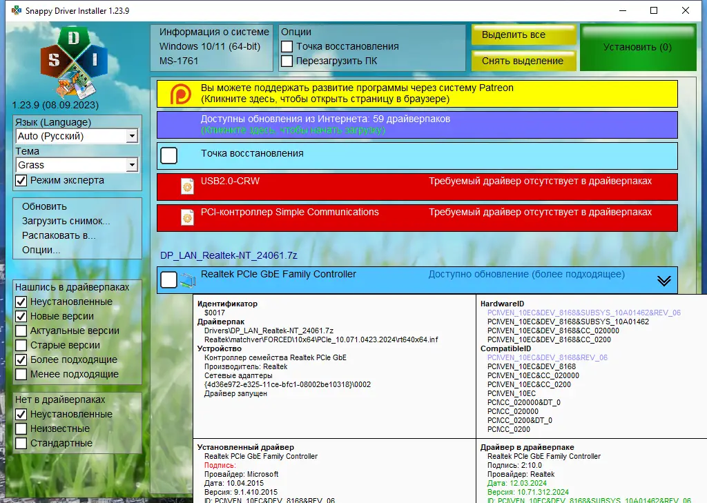 SamDrivers — специализированный сборник драйверов, включающий только компоненты для сетевого оборудования, включая LAN и Wi-Fi адаптеры. Решение идеально подходит для случаев, когда отсутствует подключение к интернету из-за неработающих сетевых интерфейсов. Программа поставляется с современными установщиками, обеспечивающими автоматическое распознавание устройств и корректную инсталляцию необходимых драйверов.