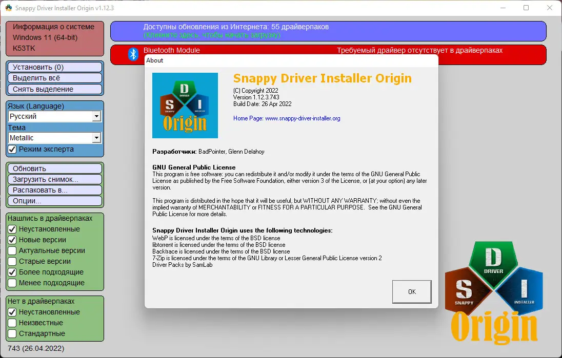 - Возможность работы в режиме эксперта с расширенной информацией о совместимости и альтернативных драйверах