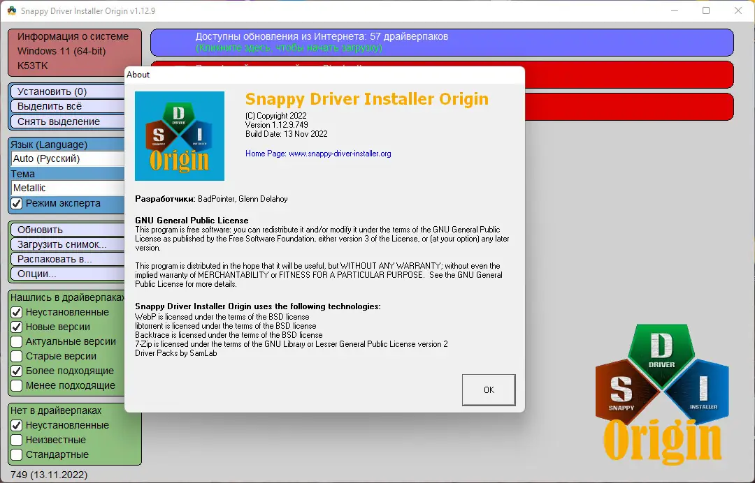 Snappy Driver Installer Origin (сокращённо sdi) — это независимая, портативная утилита, разработанная на базе C/C++, предназначенная для автоматического поиска, подбора и установки драйверов на компьютере. Программа не требует установки, совместима с различными версиями Windows и поставляется с обширной базой драйверов, включая компоненты для старых и современных устройств. Благодаря продуманному алгоритму выбора, она отдаёт приоритет наиболее подходящим версиям, а не просто самым новым, что повышает стабильность системы.