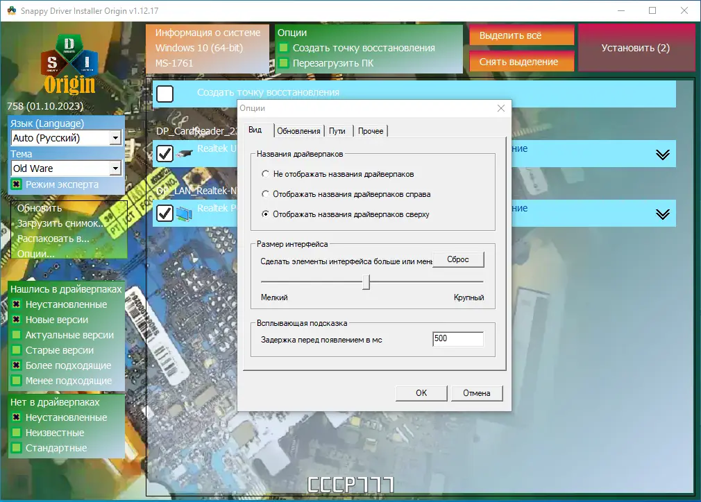 Работа с Snappy Driver Installer Origin