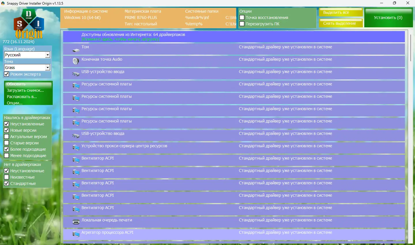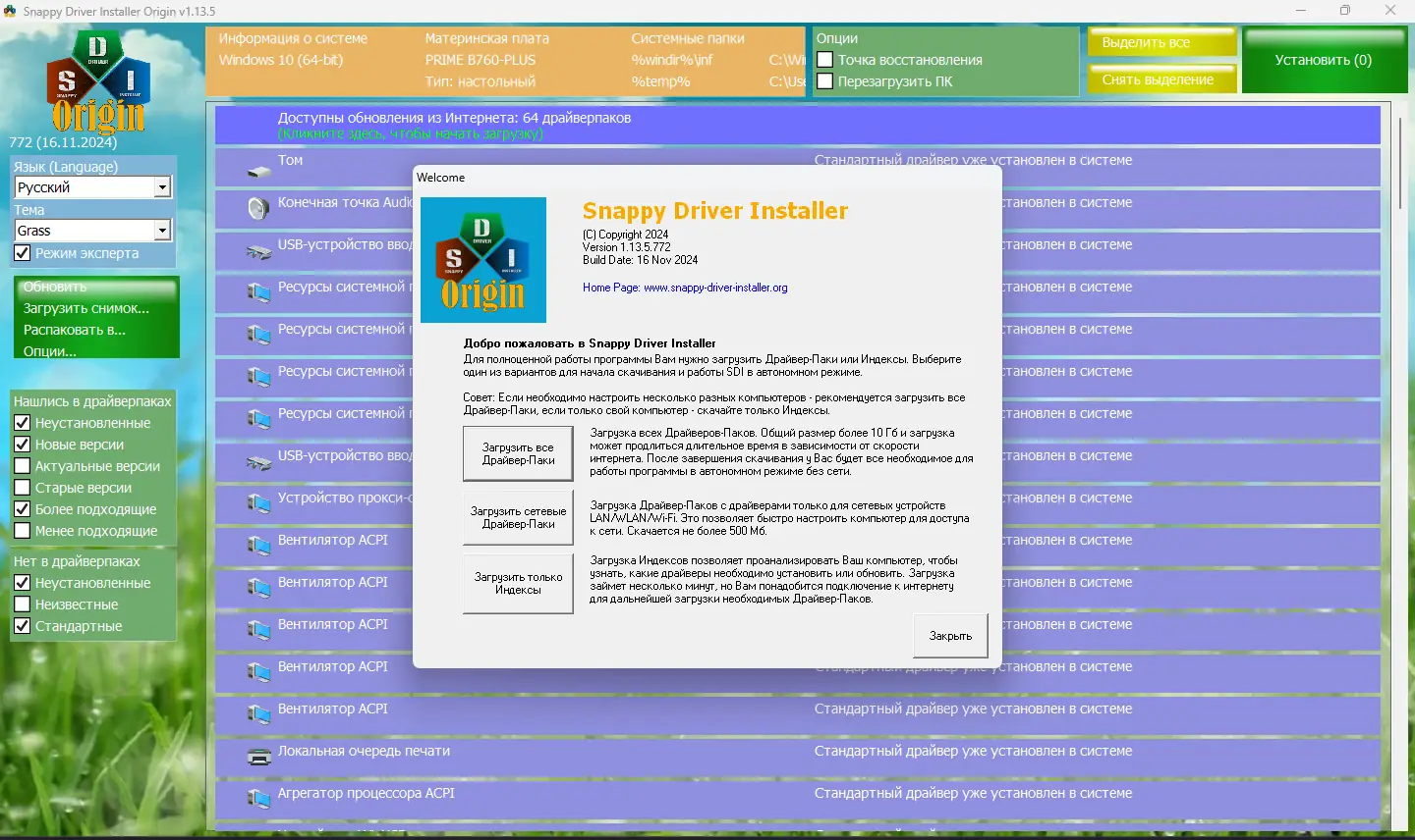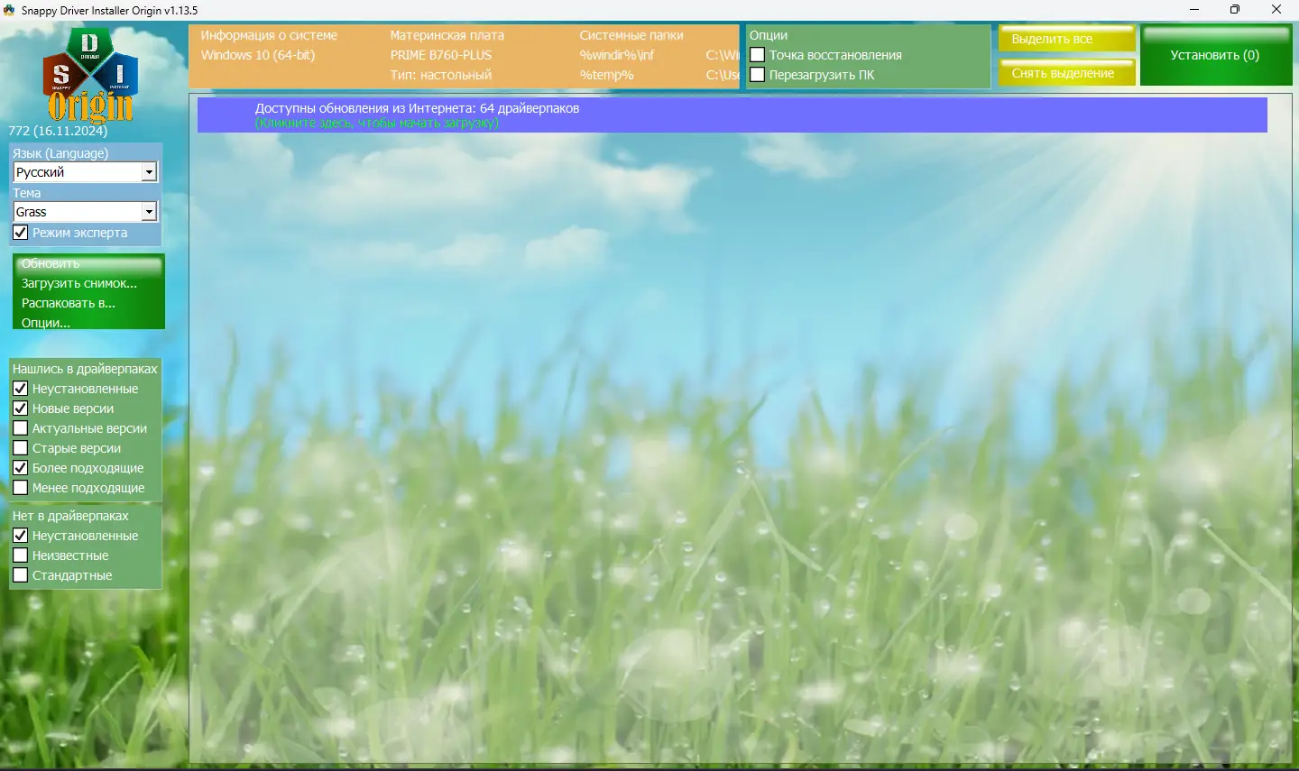 Работа с Snappy Driver Installer Origin