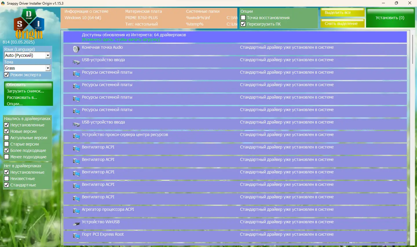 Snappy Driver Installer Origin — это независимая ветвь проекта SDI, разработанная с акцентом на стабильность, прозрачность и производительность. Написанная на C/C++, программа демонстрирует одно из самых быстрых выполнений операций: индексация оборудования, поиск совместимых драйверов и их установка происходят практически мгновенно. Архитектура позволяет работать как с упакованными, так и с распакованными драйверами, что удобно при настройке систем в автономном режиме. Программа активно использует внутренние драйверпаки, организованные по категориям устройств, что упрощает навигацию и выбор нужных компонентов.