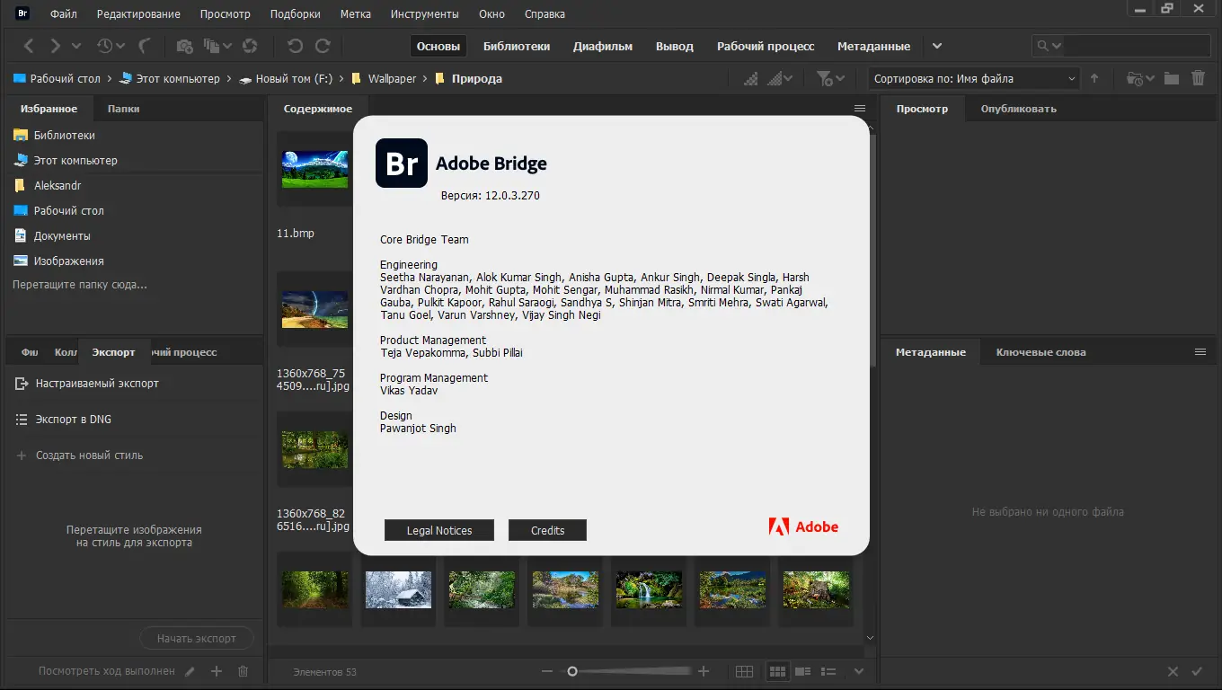 Работа с Adobe Bridge