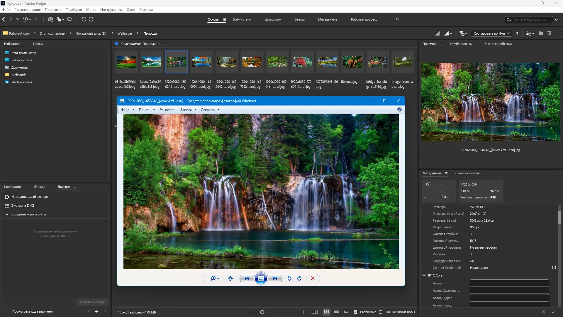 Работа с Adobe Bridge