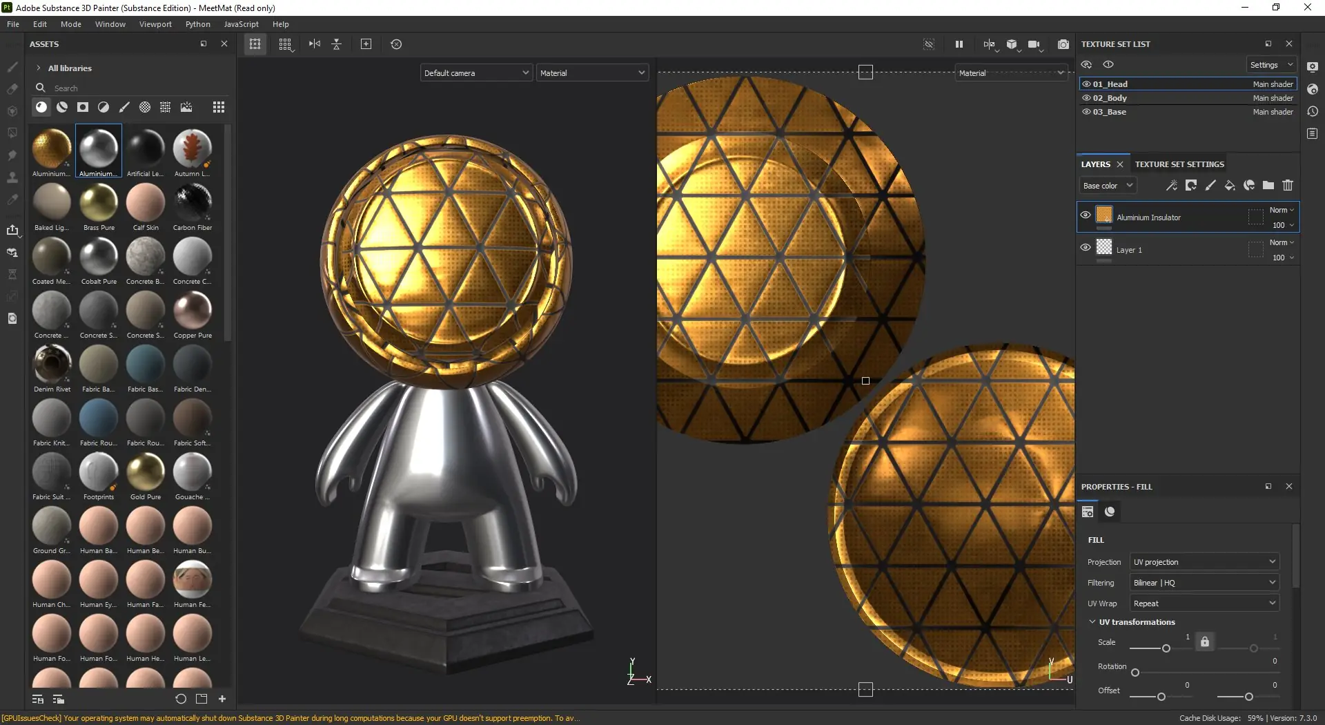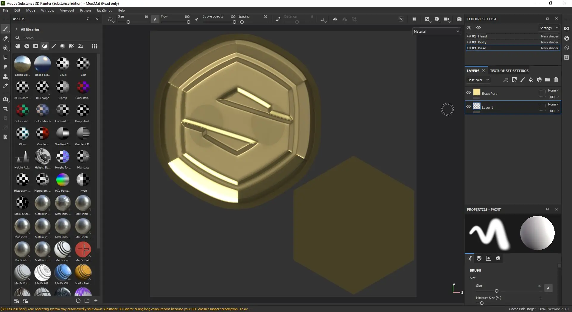 Для начала работы необходимо импортировать 3D-модель в одном из поддерживаемых форматов, таких как FBX, OBJ или USD. После загрузки программа автоматически создаст UV-развёртку или использует существующую. Далее пользователь может применять материалы, настраивать освещение сцен и работать с текстурами напрямую на модели, используя кисти, заливки и генераторы износа.