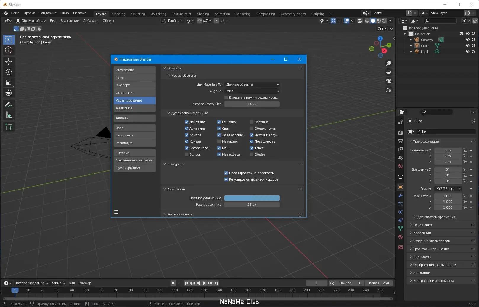 - Поддержка 3D-моделирования с использованием полигональных сеток, кривых и мета-объектов.