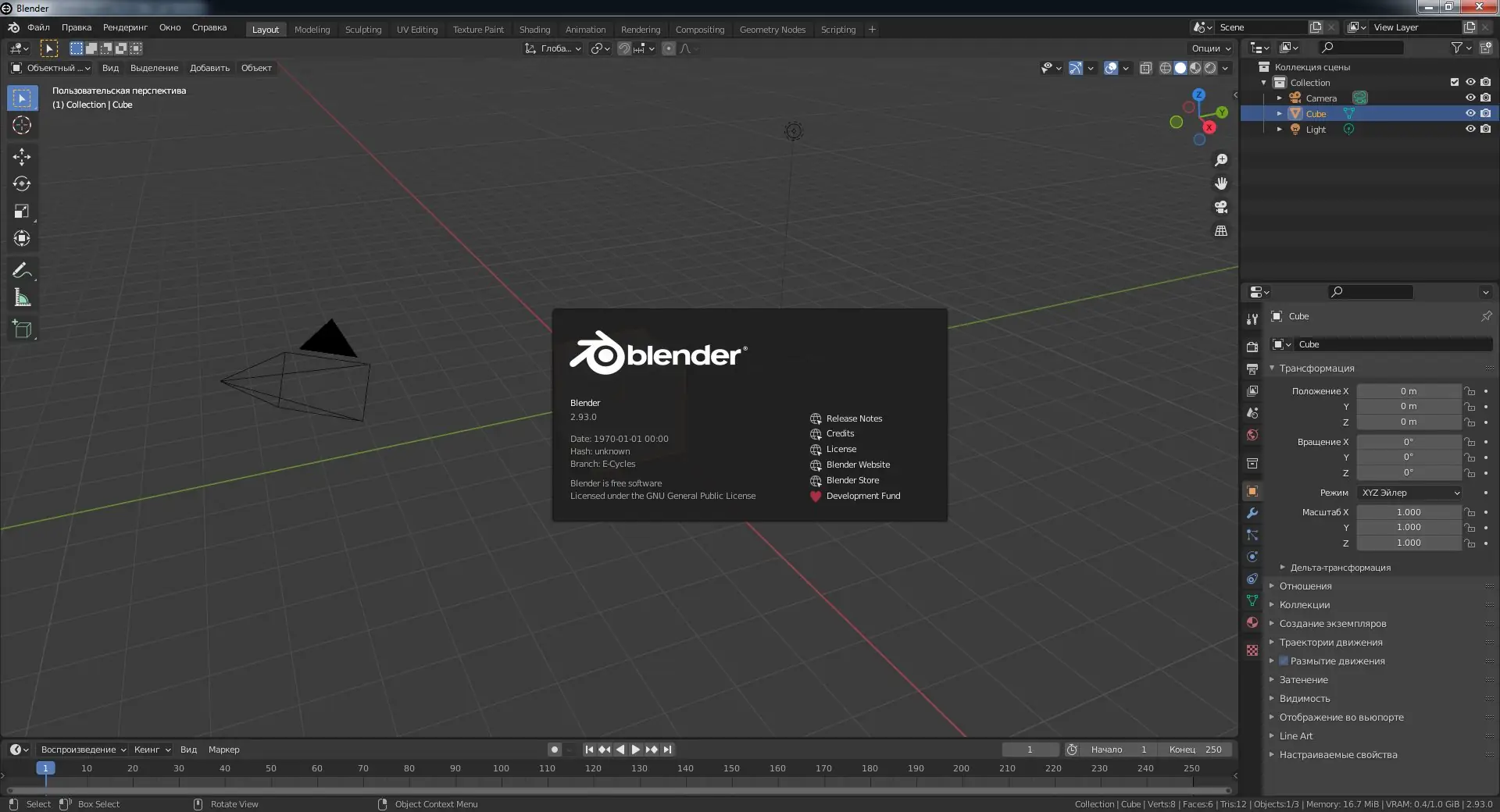 - Интегрирован рендер-движок Cycles, а также его ускоренная модификация E-Cycles.
