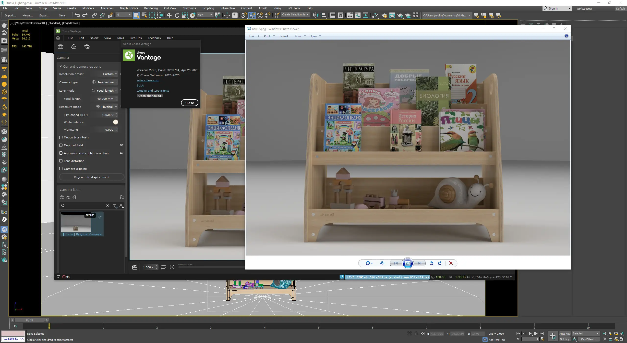 Работа с программой начинается с импорта готовой сцены из V-Ray. После загрузки пользователь получает полный доступ ко всем элементам: источникам света, материалам, камерам и параметрам окружения. Интерфейс интуитивно понятен — можно свободно перемещаться по сцене, изменять освещение, корректировать отражения и тени в реальном времени. Для экспорта результата предусмотрены настройки разрешения, качества и формата вывода, включая поддержку HDR и анимационных последовательностей.