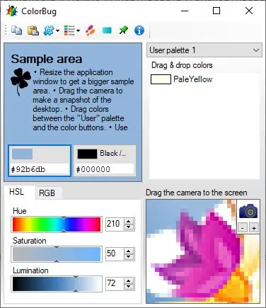 ColorBug представляет собой инструмент для захвата и анализа цвета с экрана компьютера. Он позволяет выбрать любой оттенок из активного окна или рабочего стола с высокой точностью. Программа отображает значения цвета в различных форматах, включая HEX, RGB, HSL, что делает её полезной при разработке интерфейсов и вёрстке сайтов. Поддержка цветовых моделей позволяет точно настраивать оттенки, корректируя насыщенность, яркость и тон. Утилита интегрируется с операционной системой и не мешает работе с другими приложениями.