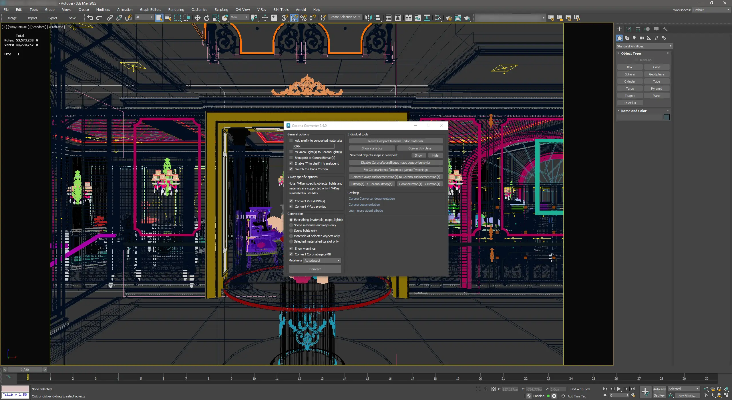 - Визуализатор совместим с 3ds Max версий 2019–2024, что обеспечивает стабильность и поддержку новейших функций.