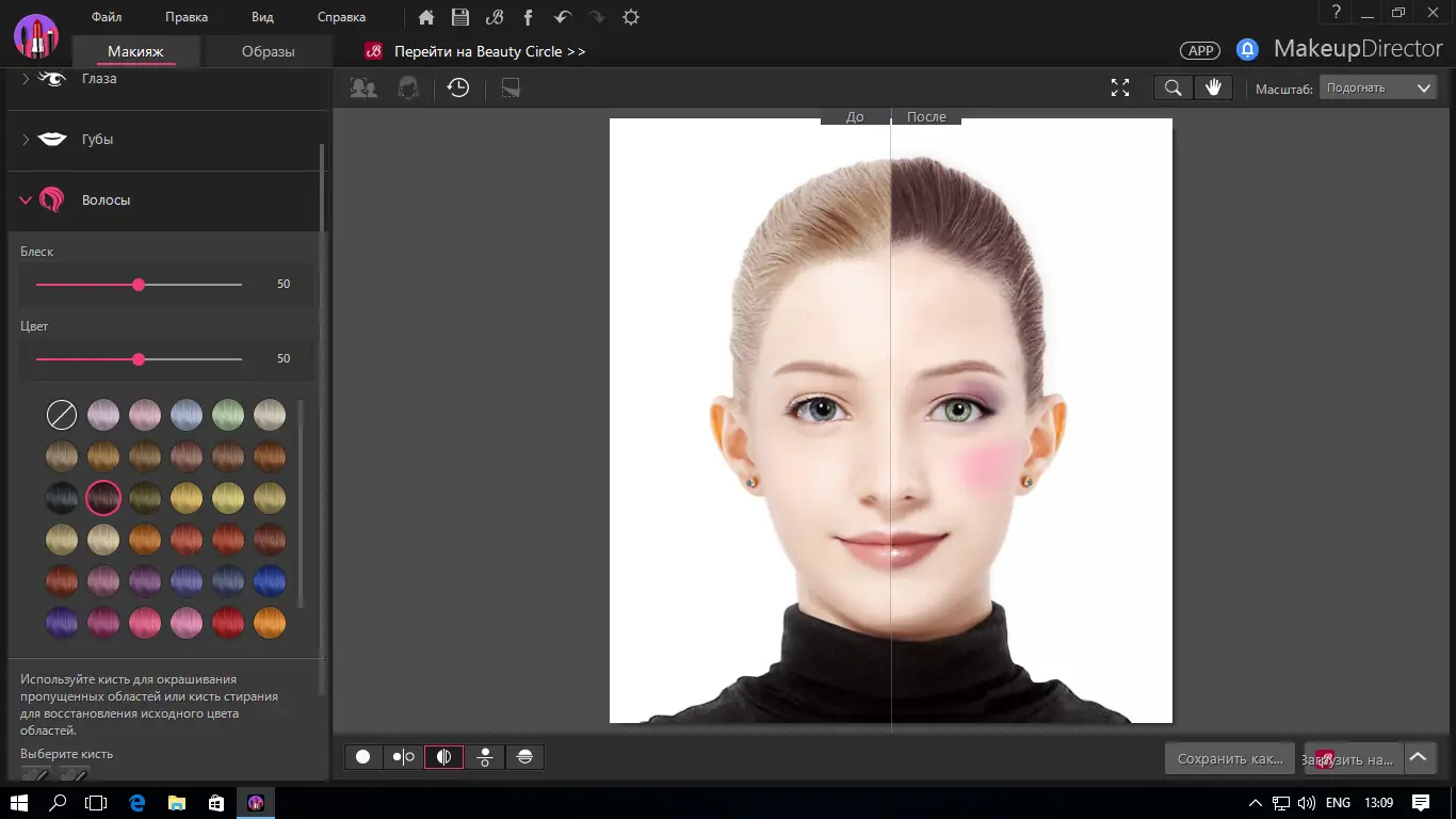 - Окрашивание волос в различные оттенки без повреждения текстуры изображения.