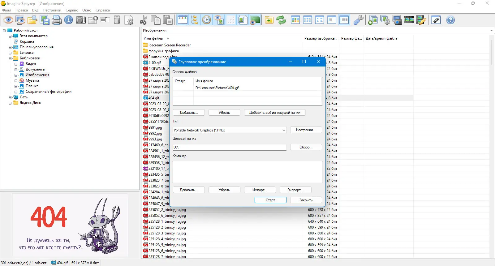 - Поддержка множества графических форматов, включая PNG, JPG, GIF, BMP, TIFF, ICO, а также анимированные и векторные типы файлов.